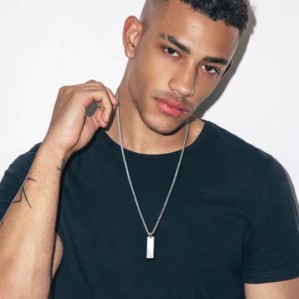 Gravur-Halskette mit rechteckigem Anhänger – Edelstahl, personalisierbar